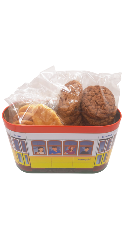 Prepare-se para uma autêntica viagem no tempo com as Bolachas Lata Elétrico. As nossas bolachas são produzidas segundo receitas Matosinhenses tradicionais, de forma artesanal e uma a uma, tal como as bolachas caseiras da sua avó. Esta abordagem resulta em bolachas "perfeitamente imperfeitas", que nos transportam imediatamente para a nossa infância. A lata presta homenagem aos icónicos elétricos de Matosinhos, um símbolo do quotidiano matosinhense de outrora.