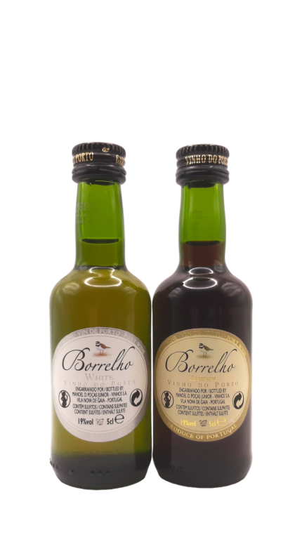 Conjunto de pequenas garrafas de 5 cl de Borrelho White e Borrelho Tawny. Ideal para os consumidores ocasionais de vinho do Porto, evitando o desperdício de um vinho aberto que se possa estragar ou a pressão de ter de terminar uma garrafa.